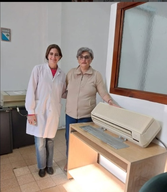 La Dra. Anastasia Secco, jefa de Reumatología, recibió un aire acondicionado donado a través de la Asociación Cooperadora gracias al Dr. Antonio Catalán Pellet.